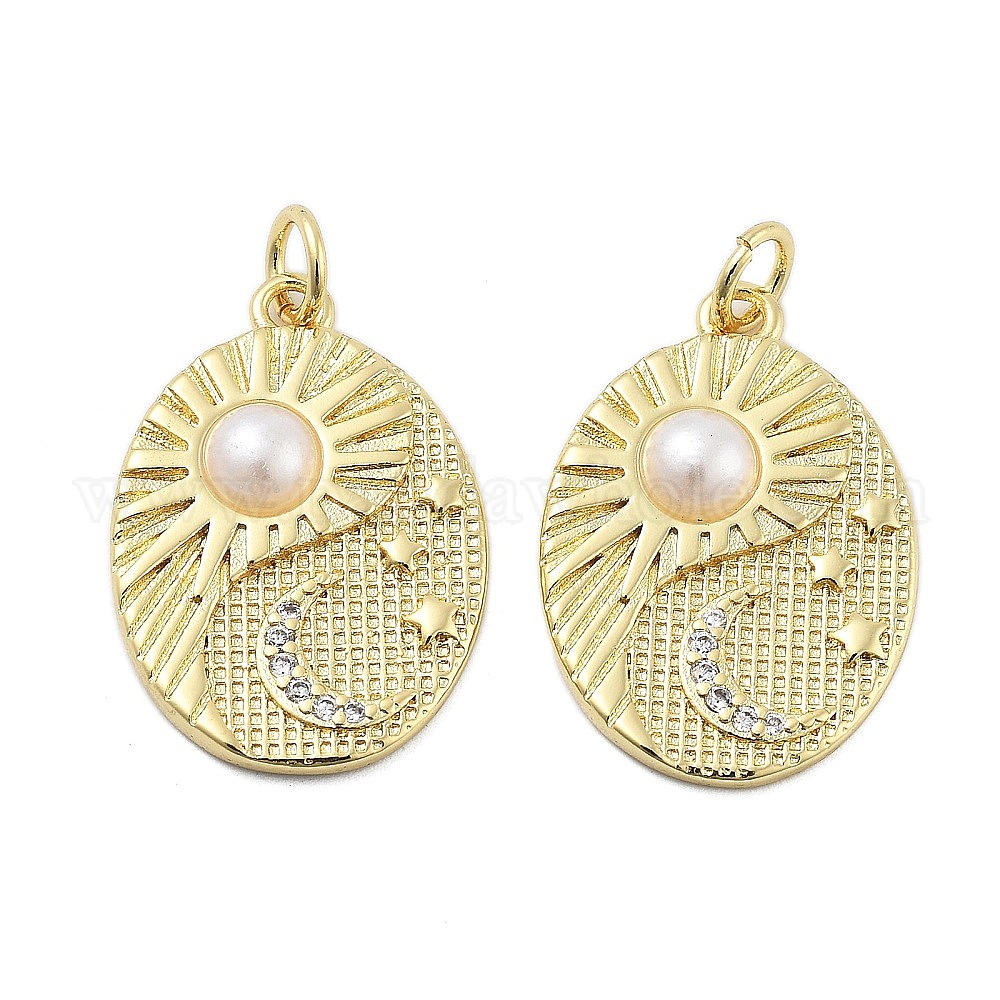 Латунные микро проложить кубического циркония подвески, овал с солнечными подвесками, с искусственным жемчугом, стойки покрытие, без свинца и без кадмия, долговечный, с целью перехода в кольце