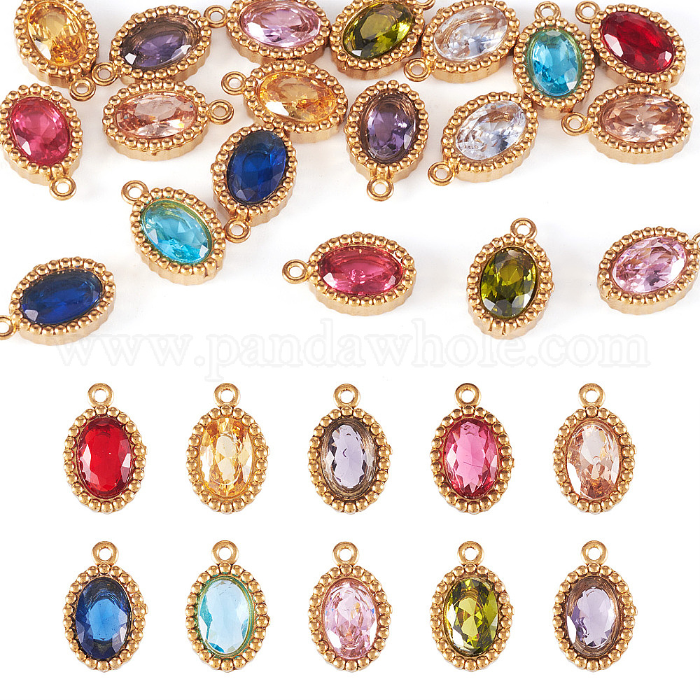 • (52) Непрозрачная лаванда 20 шт. 10 цвета 304 подвески из нержавеющей стали с микропаве из кубических цирконий, реальный 18 k позолоченный, овальные амулеты, разноцветные, 10.5x6.5x3 мм, отверстие : 0.8 мм, 2 шт / цвет
