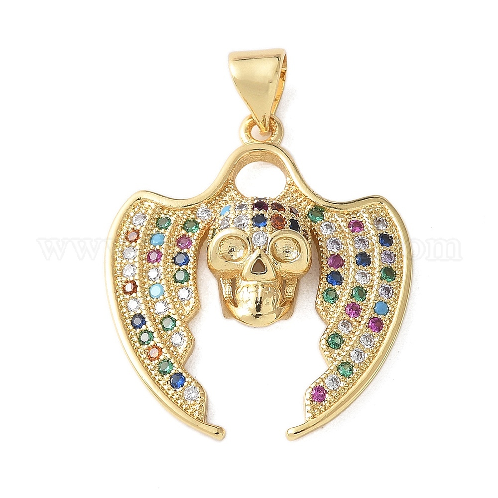 Латунные микро проложить кубического циркония подвески, крыло с черепом, долговечный, без кадмия и без свинца, стойки покрытие