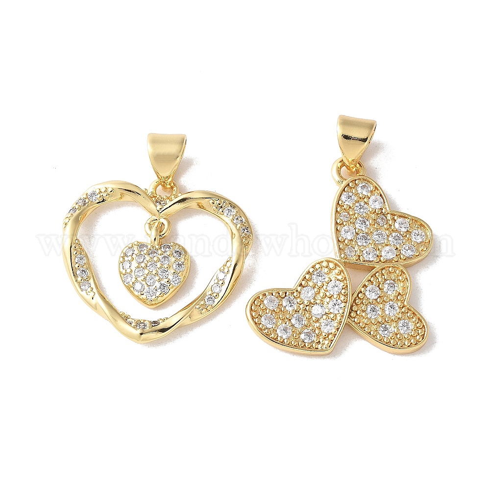 • Настоящее золото 18K Латунные микро проложить кубического циркония подвески, сердце прелести, долговечный, без кадмия и без свинца, стойки покрытие, реальный 18 k позолоченный, 22x18.5x2.5 мм, отверстие : 4.5x3 мм