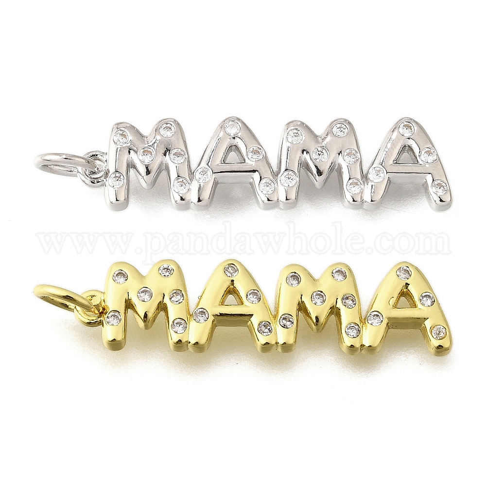 Подвески из латуни с микропаве ко Дню матери и кубическим цирконием, Слово мама, долговечный, с целью перехода в кольце, без свинца и без кадмия, стойки покрытие