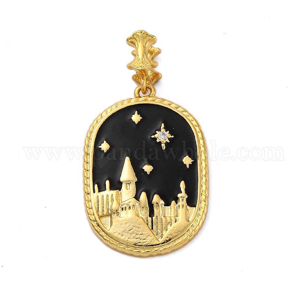 Латунные микро проложить кубического циркония подвески, с эмалью, овал с домом, долговечный, без кадмия и без свинца, стойки покрытие