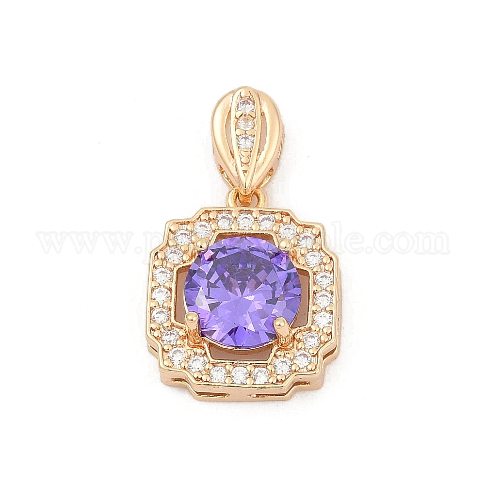 Латунные микро проложить кубического циркония подвески, квадратных амулеты, долговечный, без свинца и без кадмия