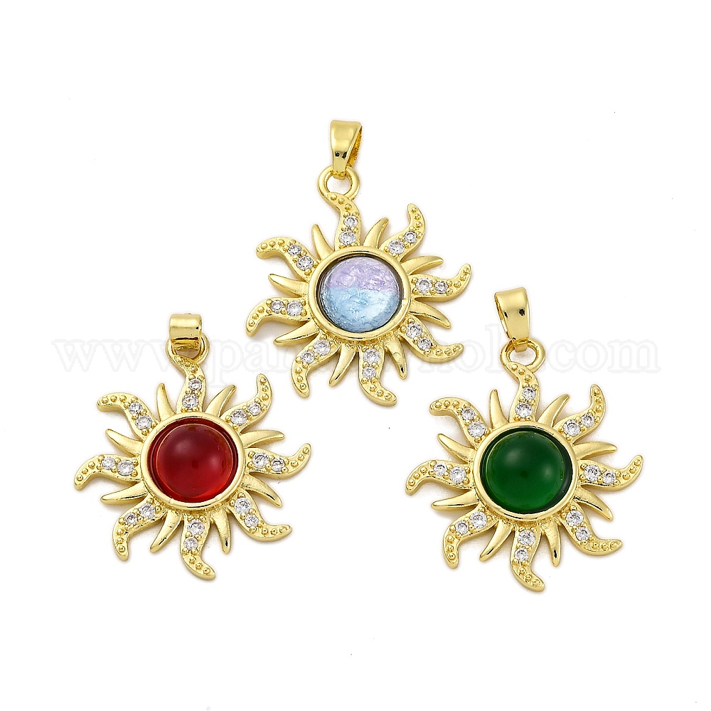 Латунные микро проложить кубического циркония подвески, cmолой, солнце, долговечный, без кадмия и без свинца, стойки покрытие, реальный 18 k позолоченный