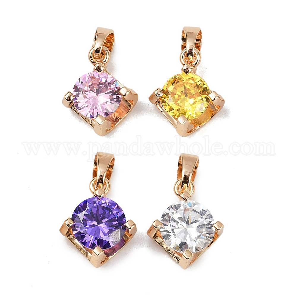 Латунные микро проложить кубического циркония подвески, ромб прелести, долговечный, без свинца и без кадмия