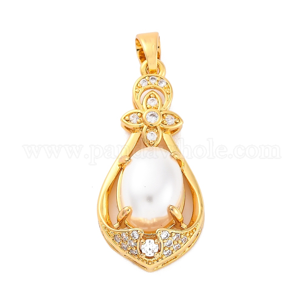 Латунные микро проложить кубического циркония подвески, слезинки, с ABS имитации жемчуга, стойки покрытие, долговечный, без свинца и без кадмия