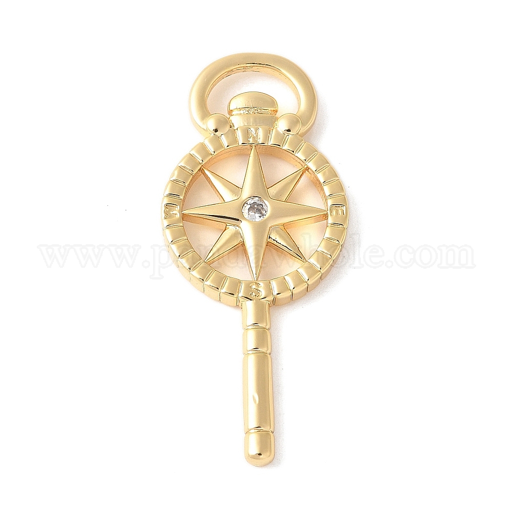 Подвески из латуни с прозрачным фианитом, звезда с компасом подвески, стойки покрытие, прочное покрытие, без никеля