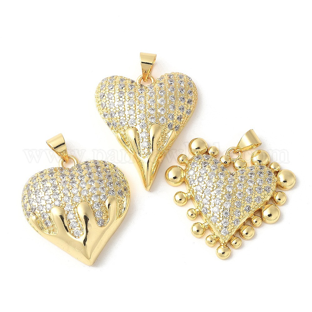 • Настоящее золото 18K Латунные микропаве прозрачные подвески с фианитом, без кадмия и без свинца, тающее сердце, реальный 18 k позолоченный, 24.5x23x6.5 мм, отверстие : 4x4.5 мм