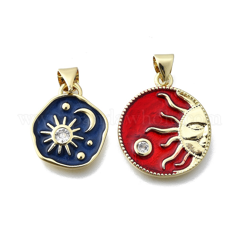 Небесные подвески из латуни с микропаве из кубического циркония, с эмалью, плоско-круглые, реальный 16 k позолоченный
