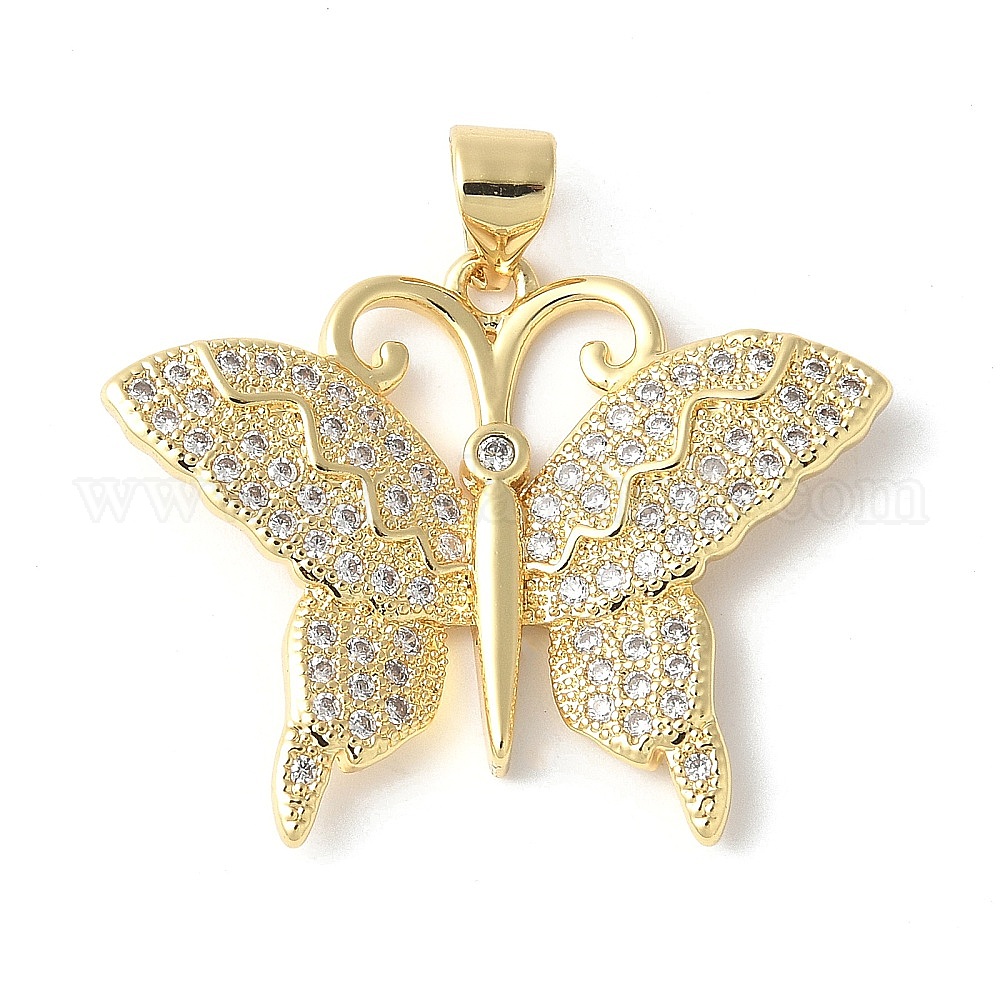 Латунные микропаве прозрачные подвески с фианитом, без кадмия и без свинца, бабочка