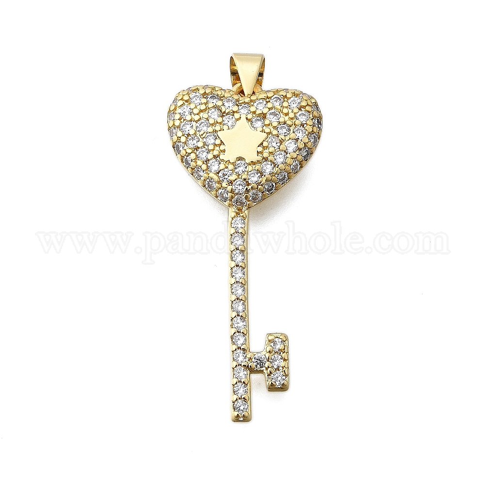 Латунные микропаве прозрачные подвески с фианитом, без кадмия и без свинца, сердечный ключ со звездой