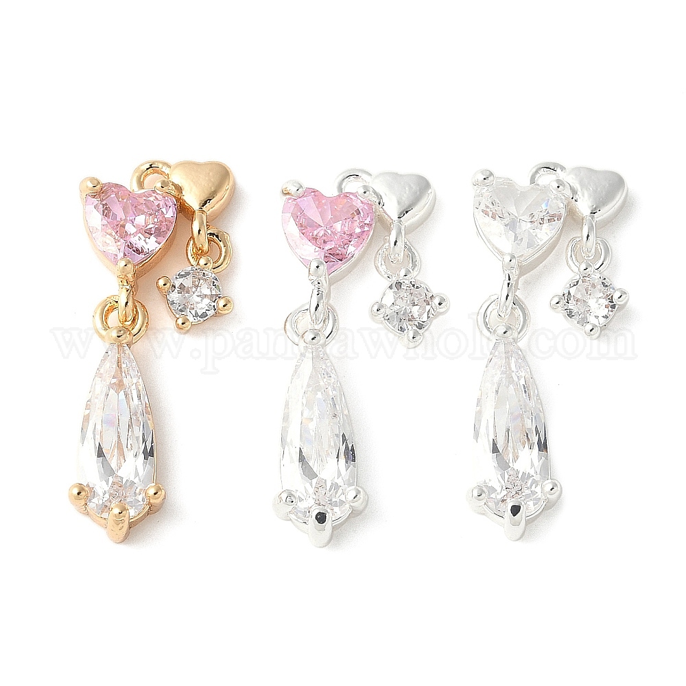 Латунные микро проложить кубического циркония подвески, без кадмия, без никеля и без свинца, сердце со слезой