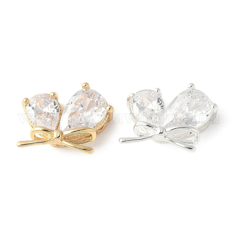 Подвески из прозрачного кубического циркония в форме капли с микропаве из латуни, без кадмия, без никеля и без свинца, бабочки прелести