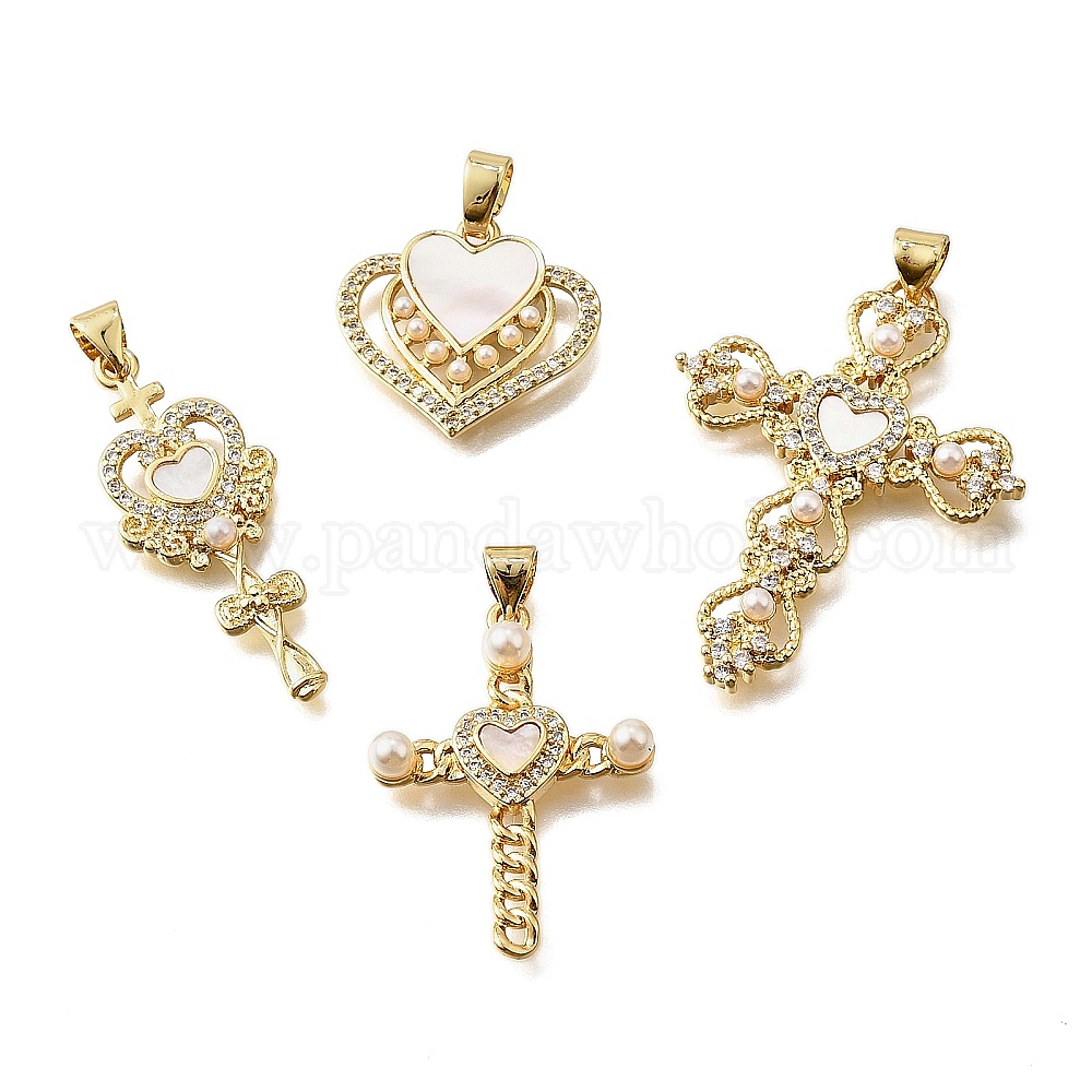 Латунные микропаве кубические цирконии АБС имитация жемчуга подвески, без кадмия и без свинца, с оболочкой, реальный 18 k позолоченный