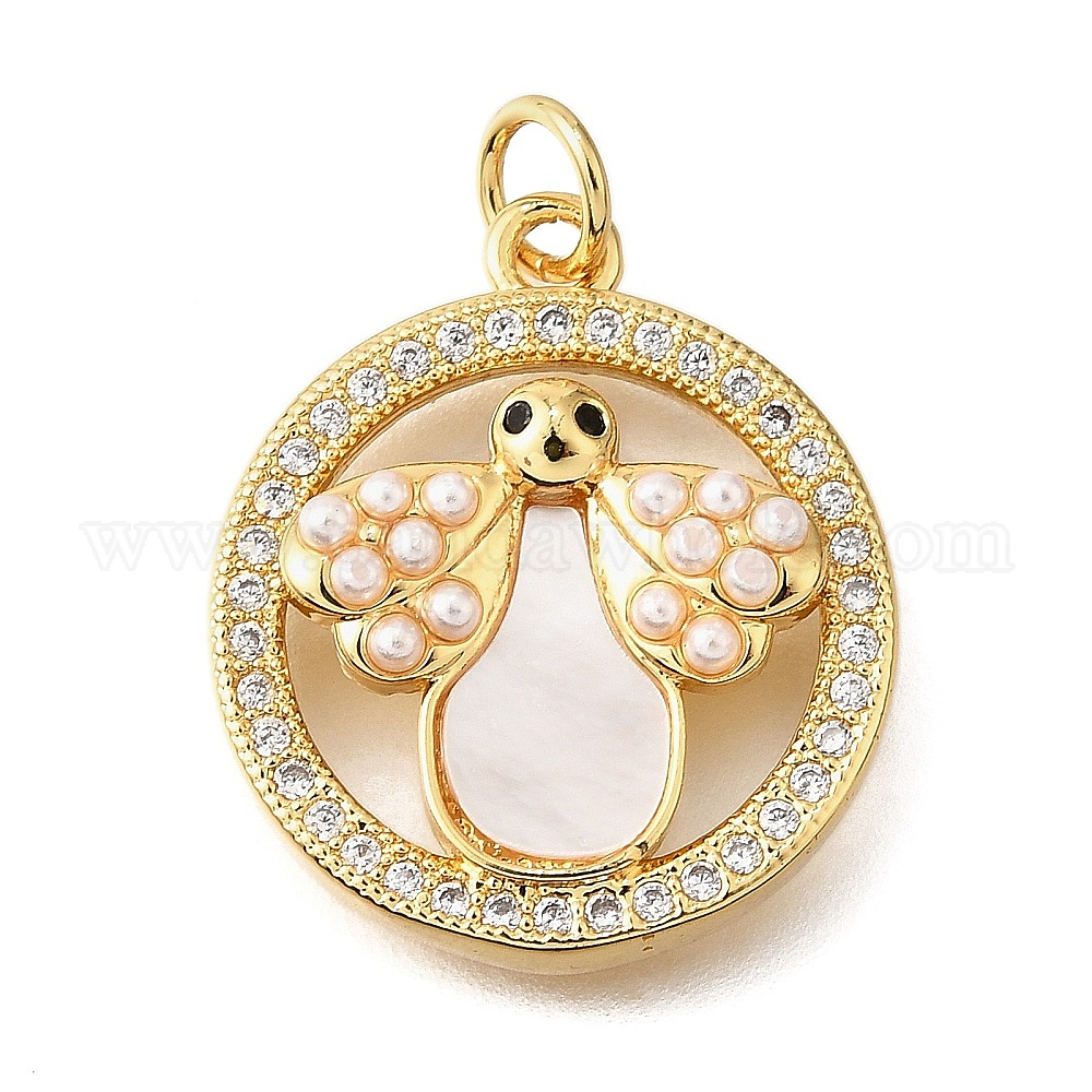Латунные микропаве кубические цирконии АБС имитация жемчуга подвески, с оболочкой, круглый с пчелками-талисманами, с целью перехода в кольце