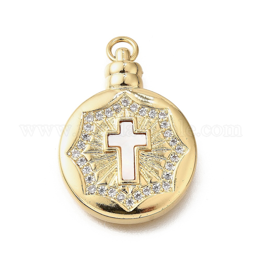 Подвески в форме ракушек из латуни с микропаве и кубическим цирконием, с целью перехода в кольце, без кадмия и без свинца, круглые с крестом
