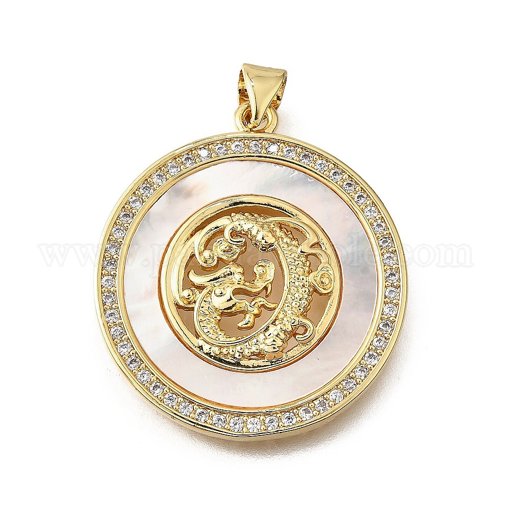 Подвески в форме ракушек из латуни с микропаве и кубическим цирконием, без кадмия и без свинца, круглый с драконом (032J6R)