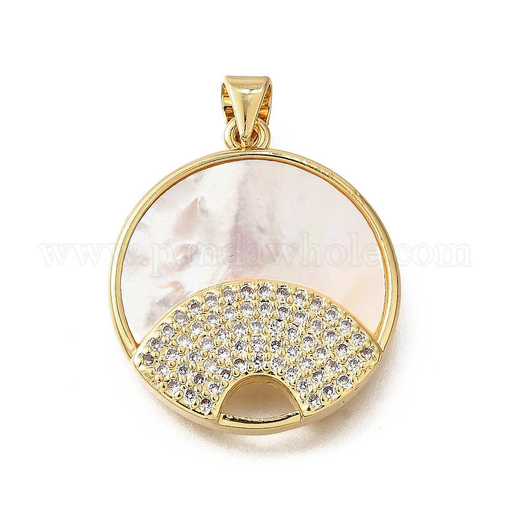 Подвески в форме ракушек из латуни с микропаве и кубическим цирконием, без кадмия и без свинца, круглые (032J7B)