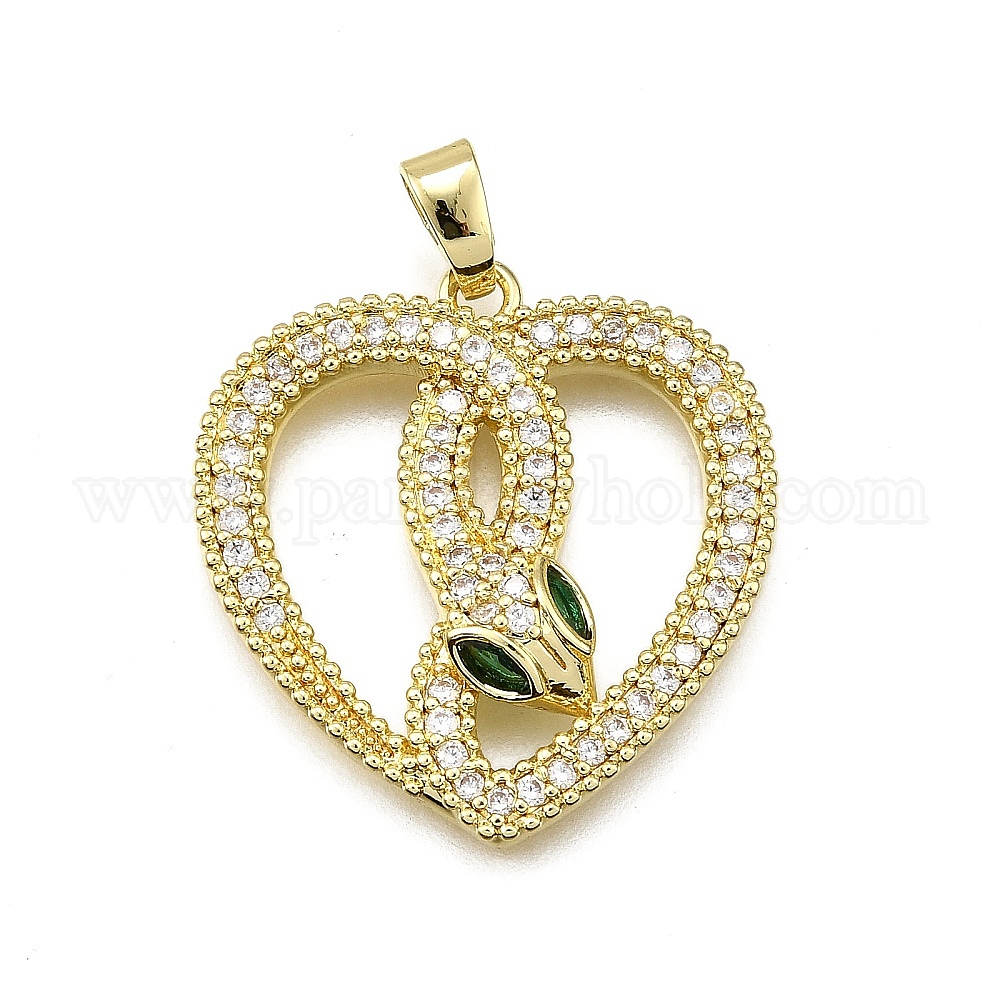 Латунные микро проложить кубического циркония подвески, сердце со змеей, долговечный, без свинца и без кадмия, стойки покрытие