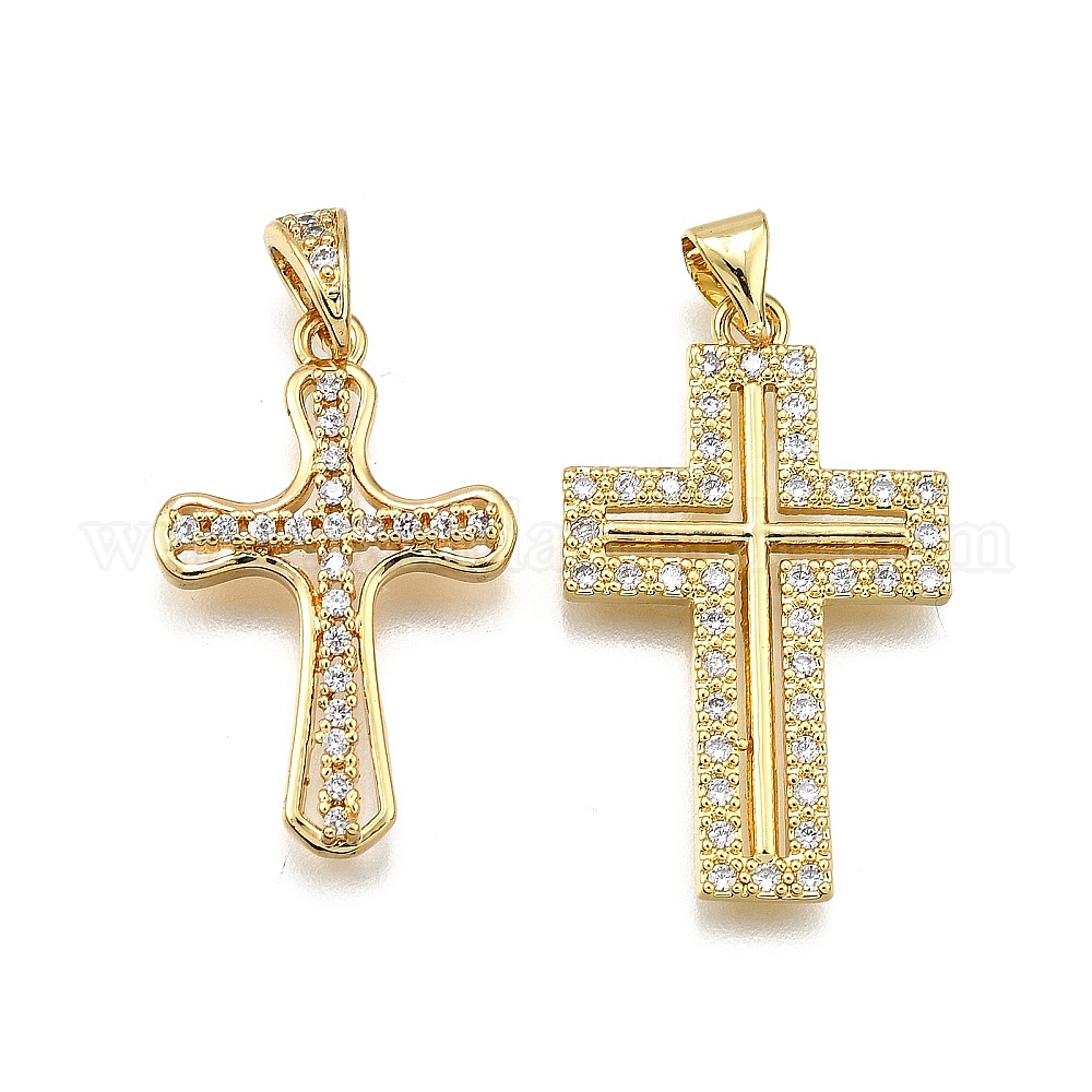 Латунные микро проложить кубического циркония подвески, крестик, долговечный, без свинца и без кадмия