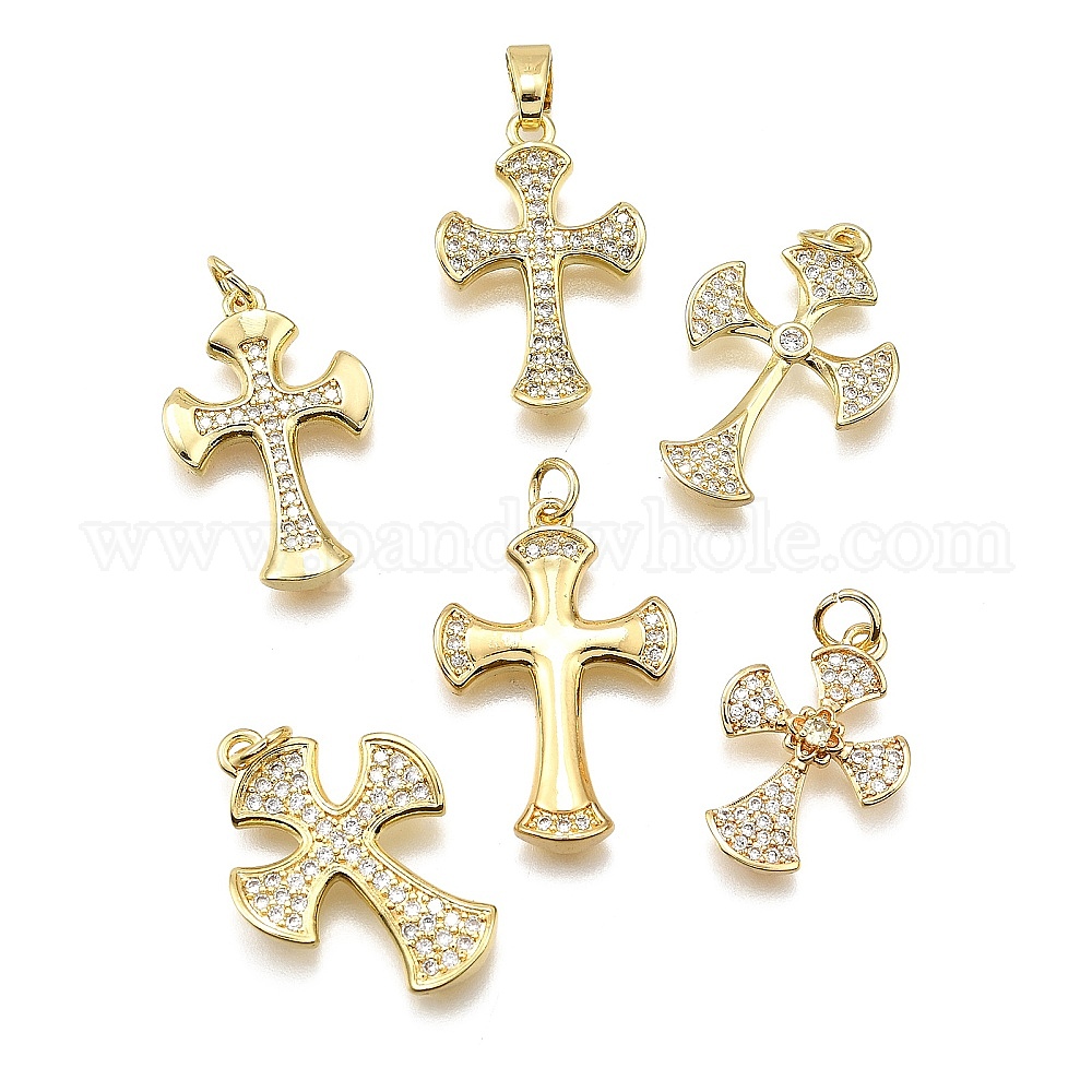 Латунные микро проложить кубического циркония подвески, крестик, долговечный, без свинца и без кадмия, с целью перехода в кольце