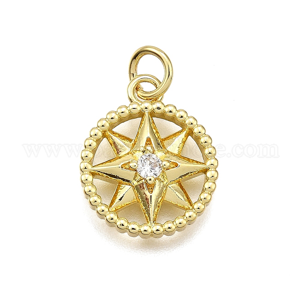 Латунные микро проложить кубического циркония подвески, плоские круглые со звездой, долговечный, без свинца и без кадмия, стойки покрытие, с целью перехода в кольце