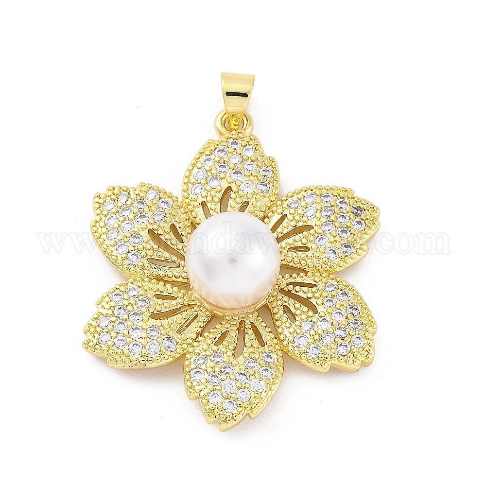 Латунные микро проложить кубического циркония подвески, с пластмассовой жемчужиной abs, , стойки покрытие, прочное покрытие, без кадмия и без свинца