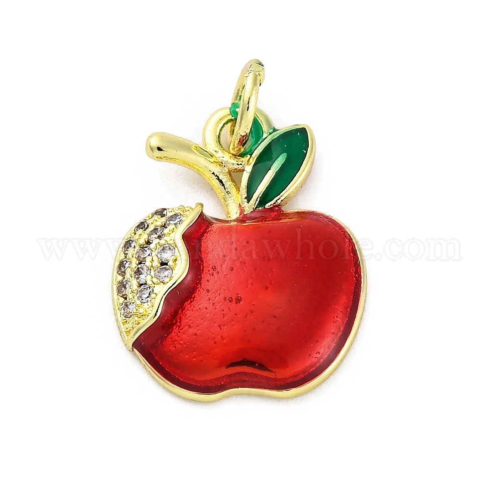 Латунные микро проложить кубического циркония подвески, с эмалью, яблочные прелести, стойки покрытие, прочное покрытие, без кадмия и без свинца
