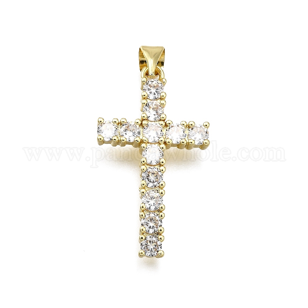 Латунные микро проложить кубического циркония подвески, крестик, долговечный, без свинца и без кадмия, стойки покрытие