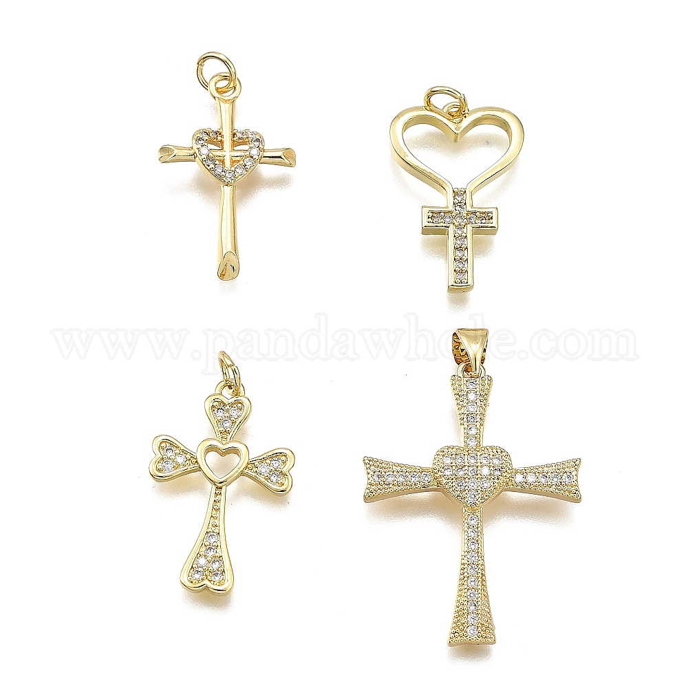 Латунные микро проложить кубического циркония подвески, крест и сердце, долговечный, без свинца и без кадмия, стойки покрытие, с целью перехода в кольце