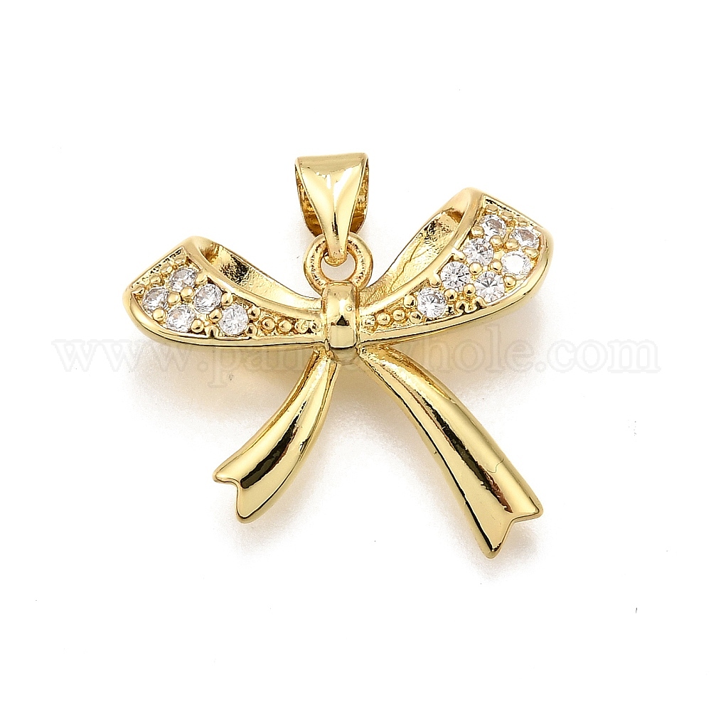• Настоящее золото 18K Латунные микро проложить кубического циркония подвески, бантом, стойки покрытие, долговечный, без свинца и без кадмия, реальный 18 k позолоченный, 18x21x5 мм, отверстие : 4.5x3 мм