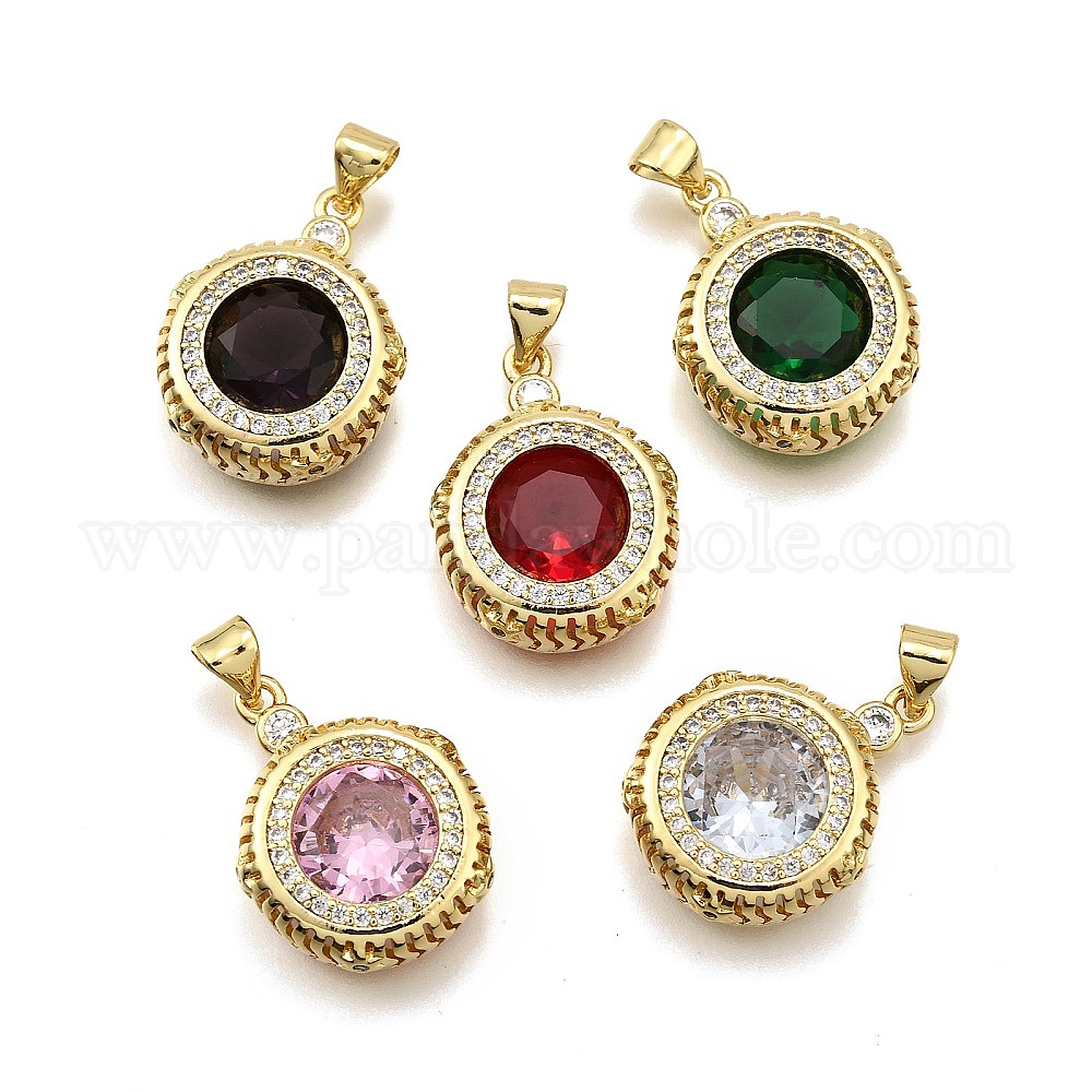 Латунные микро проложить кубического циркония подвески, плоско-круглые, стойки покрытие, долговечный, без свинца и без кадмия, реальный 18 k позолоченный