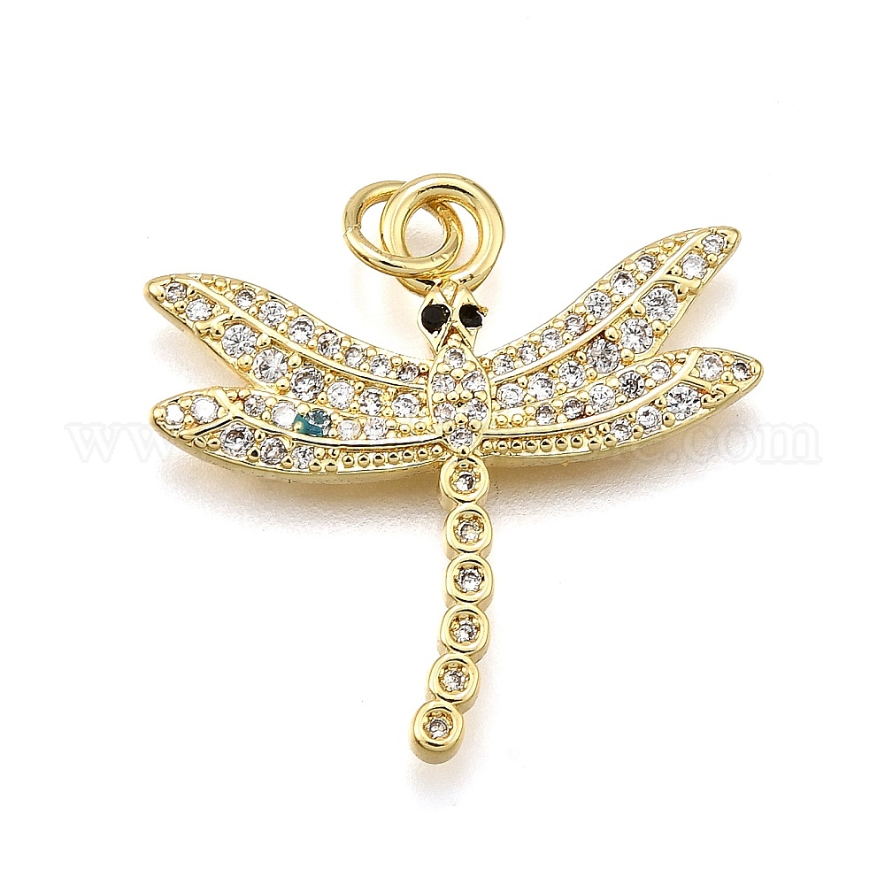 • Настоящее золото 18K Стойка металлическая латунная микропрофилированная кубическая циркония подвески, стрекоза, с целью перехода в кольце, без кадмия и без свинца, долговечный, реальный 18 k позолоченный, 24x25x2.5 мм, отверстие : 3.5 мм