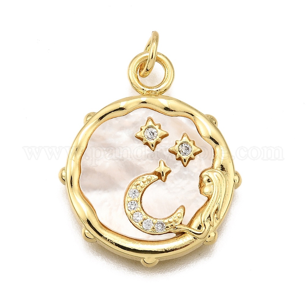 Латунные микро проложить кубического циркония подвески, с оболочкой, Плоский круглый с луной и звездой, стойки покрытие, долговечный, без свинца и без кадмия, с целью перехода в кольце
