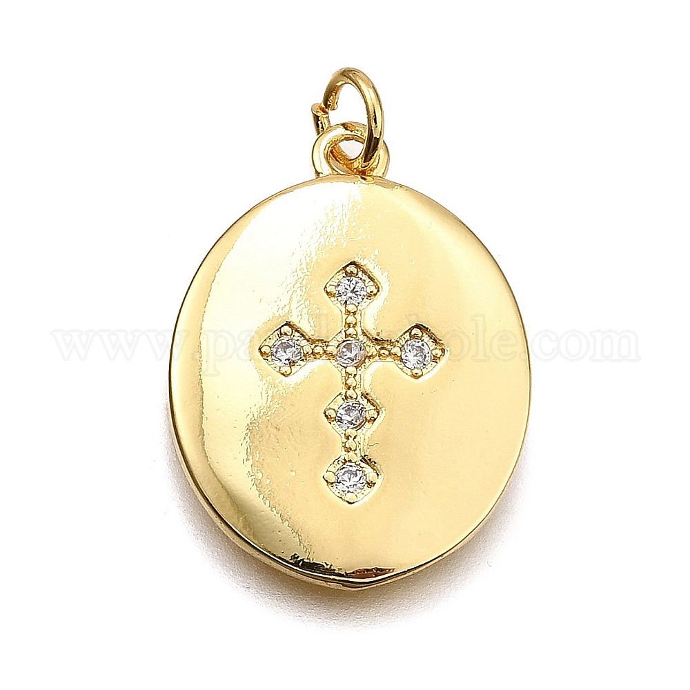 • Настоящее золото 18K Стойка металлическая латунная микропрофилированная кубическая циркония подвески, овальные с крестом, с целью перехода в кольце, без кадмия и без свинца, долговечный, реальный 18 k позолоченный, 22.5x17x2 мм, отверстие : 3.5 мм