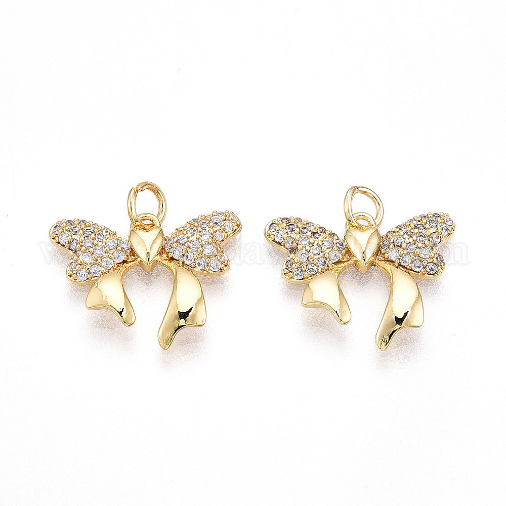 Латунные микро проложить кубического циркония подвески, без кадмия и без свинца, бантом, с целью перехода в кольце (032N7Y)