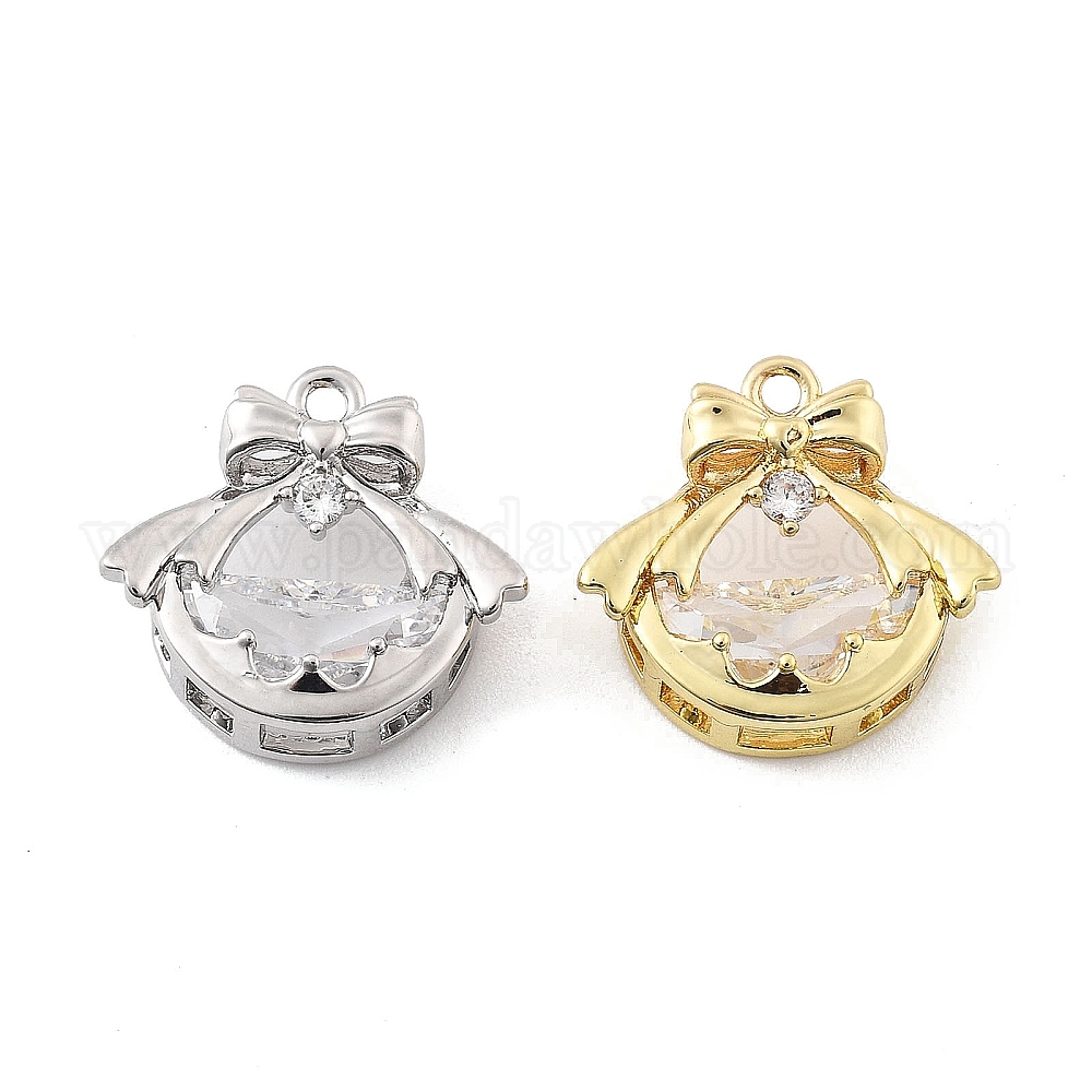 Латунные микропаве прозрачные подвески с фианитом, без кадмия, без никеля и без свинца, бантом
