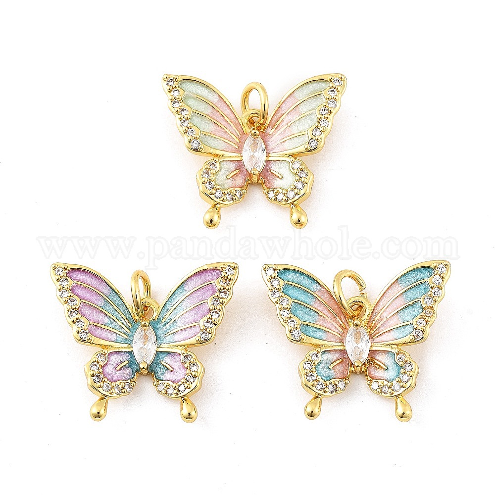 Латунные микро проложить кубического циркония подвески, без кадмия, без никеля и без свинца, с эмалью, бабочка, реальный 18 k позолоченный, с целью перехода в кольце