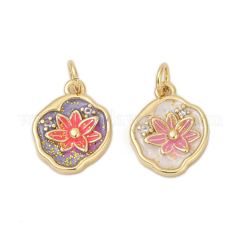 • Лиловый Латунные микро проложить кубического циркония подвески, с эмалью, , стойки покрытие, прочное покрытие, без кадмия и без свинца, с целью перехода в кольце, сирень, 14.5x11.5x3 мм, отверстие : 3 мм