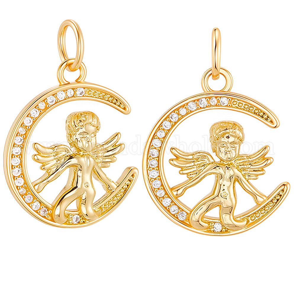 • Настоящее золото 18K 8 кулоны из латуни с микрочастицами и кубическим цирконием., ангел и фея, с целью перехода в кольце, реальный 18 k позолоченный, 20.5x16.5x3.5 мм, отверстие : 4.2 мм