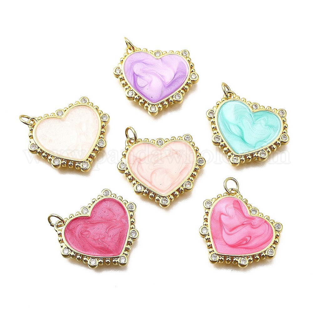 Латунные микропроволочные кубические циркониевые подвески из эмали, сердце, с целью перехода в кольце, без свинца и без кадмия, реальный 18 k позолоченный, стойки покрытие, прочное покрытие