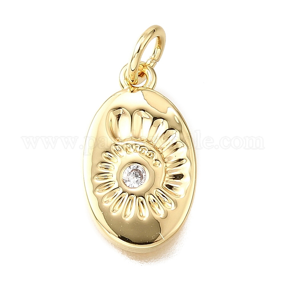 Латунные микропаве прозрачные подвески с фианитом, овальные с узором в виде ракушек подвески, без свинца и без кадмия, стойки покрытие, долговечный