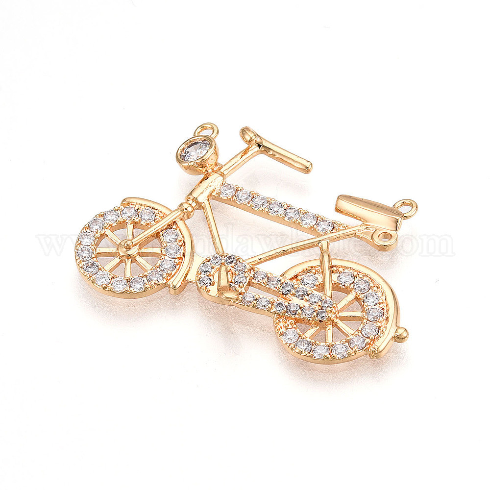 • Настоящее золото 18K Латунные микро проложить кубического циркония подвески, без кадмия, без никеля и без свинца, велосипед, реальный 18 k позолоченный, 25.8x38.5x5 мм, отверстие : 1.2 мм