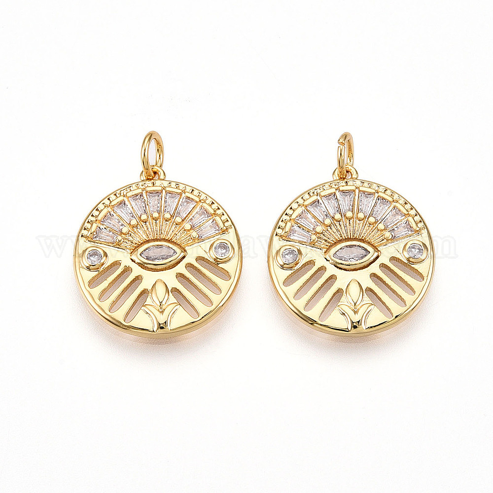 Латунные микро проложить кубического циркония подвески, без кадмия, без никеля и без свинца, с целью перехода в кольце, плоские круглые с сглаза
