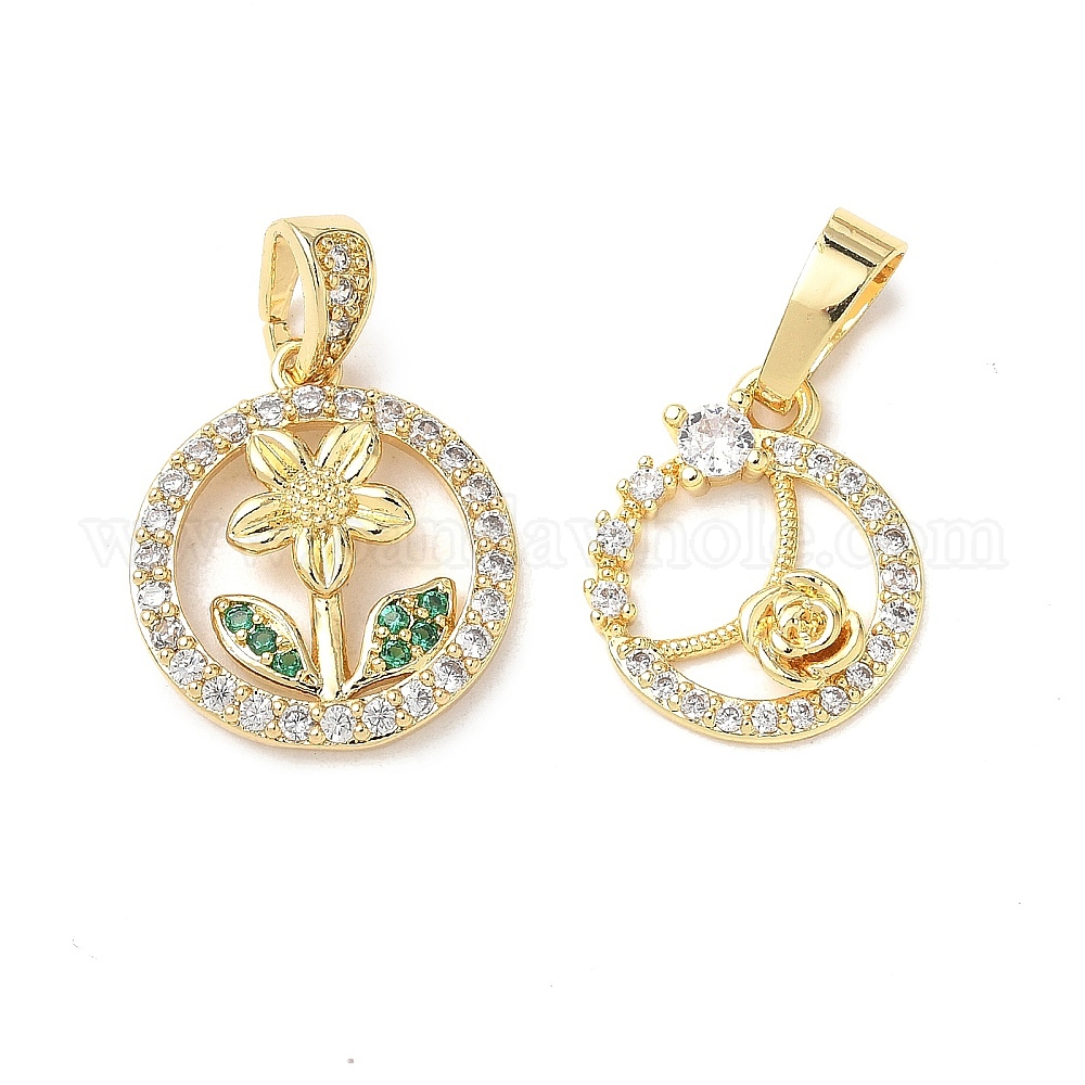 Латунные микро проложить кубического циркония подвески, без кадмия и без свинца, круглая с цветком
