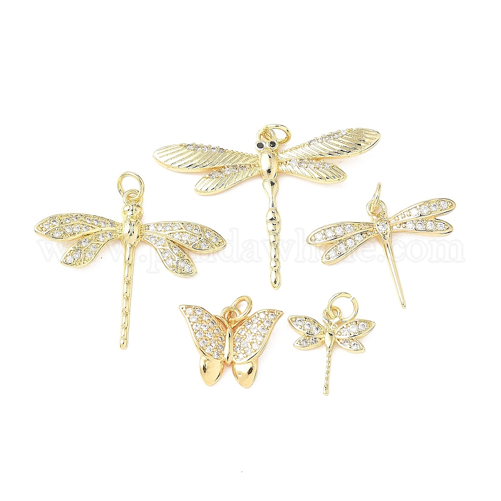 • Dragonfly Латунные микро проложить кубического циркония подвески, без кадмия и без свинца, с целью перехода в кольце, реальный 18 k позолоченный, стрекоза, 27x31x3.5 мм, отверстие : 3.5 мм
