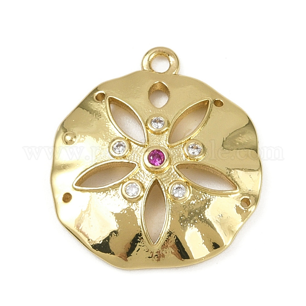 Латунные микро проложить кубического циркония подвески, шарм песчаного доллара, круглая с цветком, долговечный, без кадмия и без свинца, стойки покрытие