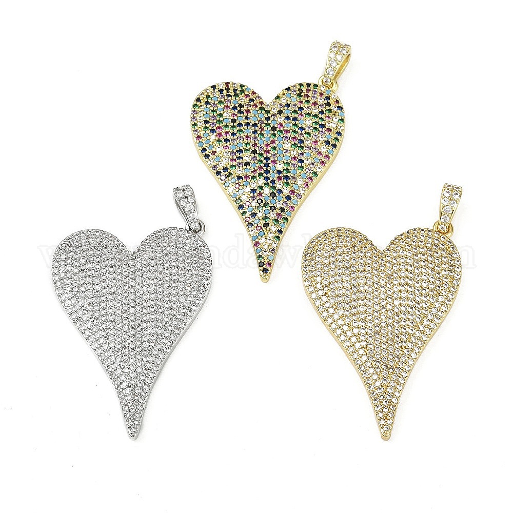 Латунные микро проложить кубического циркония подвески, сердце, долговечный, без кадмия и без свинца, стойки покрытие