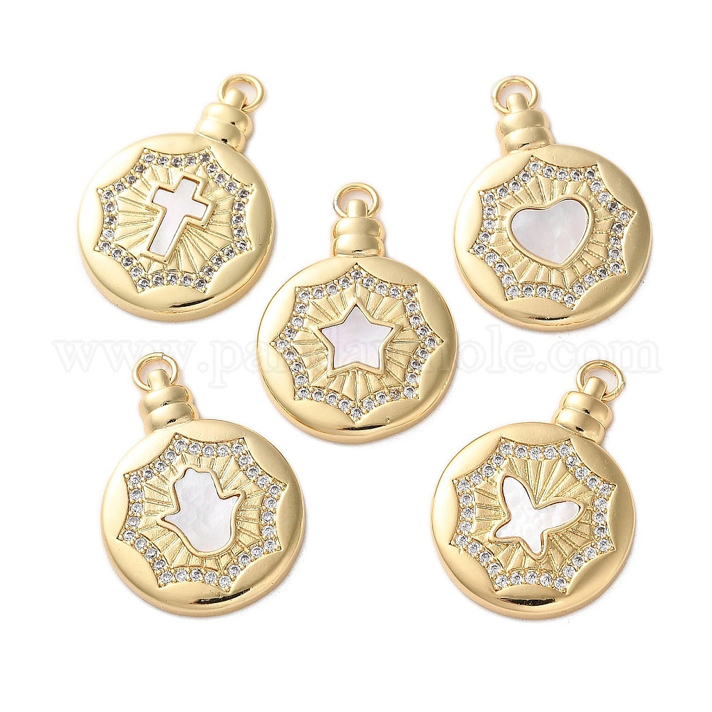 Латунные микро проложить кубического циркония подвески, с оболочкой, плоские круглые прелести, реальный 18 k позолоченный, стойки покрытие, прочное покрытие, без кадмия и без свинца, с целью перехода в кольце (0332PN)