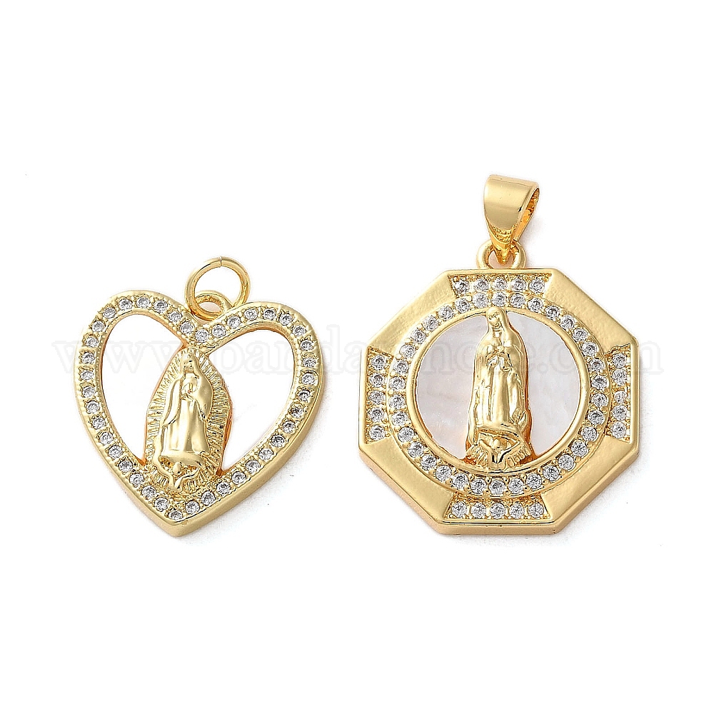 Латунные микро проложить кубического циркония подвески, Дева Мария, с оболочкой, реальный 18 k позолоченный, стойки покрытие, прочное покрытие, без кадмия и без свинца